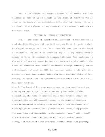 Sec. 6. SUSPENSION OF VOTING PRIVILEGES. No member shall be