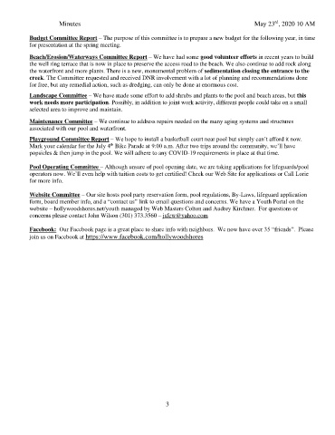 Facebook: Our Facebook page is a great place to share info with neighbors. We now have over 35 “friends”. Please