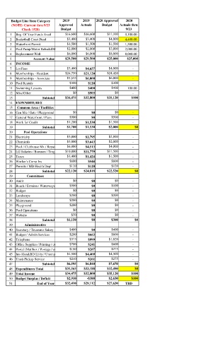 Budget Line Item Category 2019 2019 2020 Approved 2020