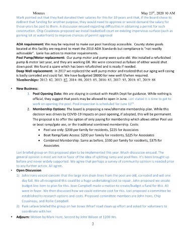 1. Pool Opening Date: We are staying in contact with Health Dept for guidance. While nothing is