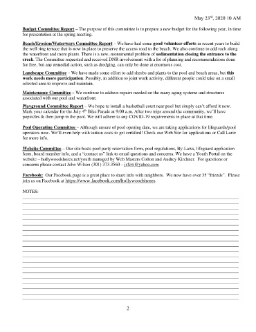 Landscape Committee – We have made some effort to add shrubs and plants to the pool and beach areas, but this