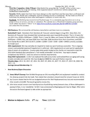 1) Jones Wharf Cleanup: Pam briefed the group on this recurring effort and equipment needed to conduct