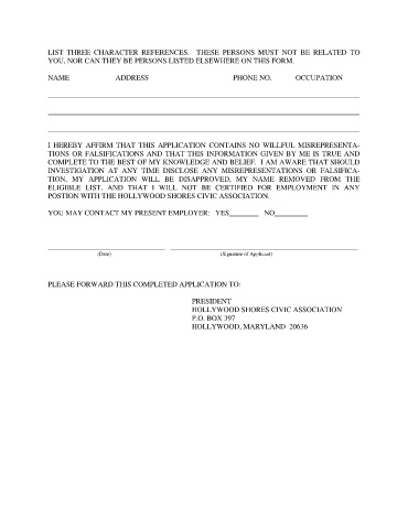 POSTION WITH THE HOLLYWOOD SHORES CIVIC ASSOCIATION.
