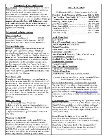 the board, our budget, and you, our neighbors. Please get Treasurer - Mark Hunt (2019) ..………….. 240-577-4291