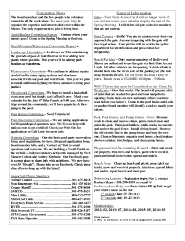 Playground Committee –We hope to install a basketball of tasks that are needed for pool and boat ramp/docks