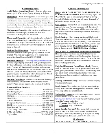 committee. Jean Campbell at 240-298-6072. needed for pool and boat ramp/docks opening. Some are