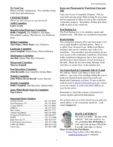 COMMITTEES your trash and dog poop. Help us keep the area clean