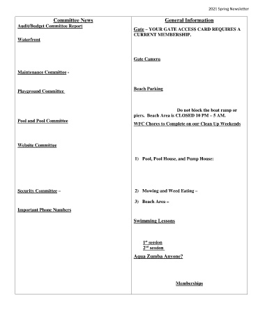 Security Committee – Monitors community facilities 2) Mowing and Weed Eating – Mow and weed-eat